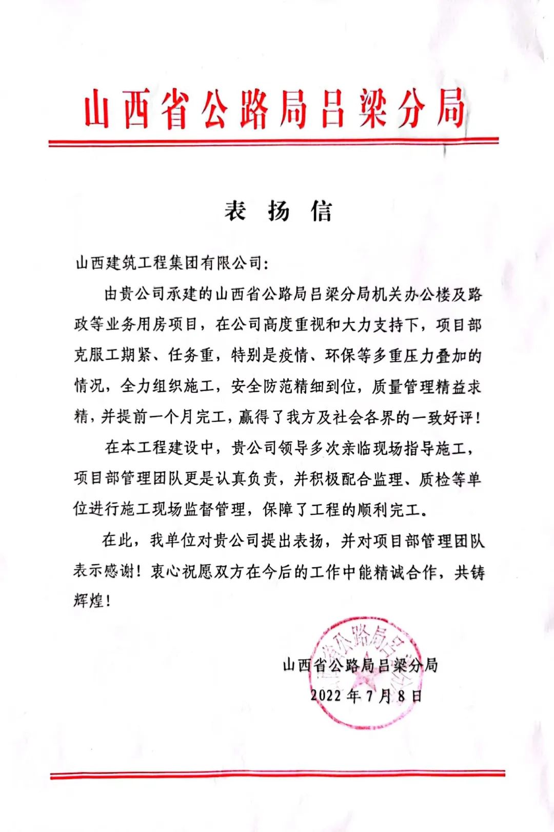 近日,由山西建投建工集团承建的山西省公����� �������Ƴ������������ �������Ƴ������������ �������Ƴ����������� �������Ƴ�������路局吕梁分局机关办公楼及路政等业务用房项目提前4����� �������Ƴ������������ �������Ƴ������������ �������Ƴ������������ �������Ƴ�������0天完成交付使用,获得建设单位高度赞扬。