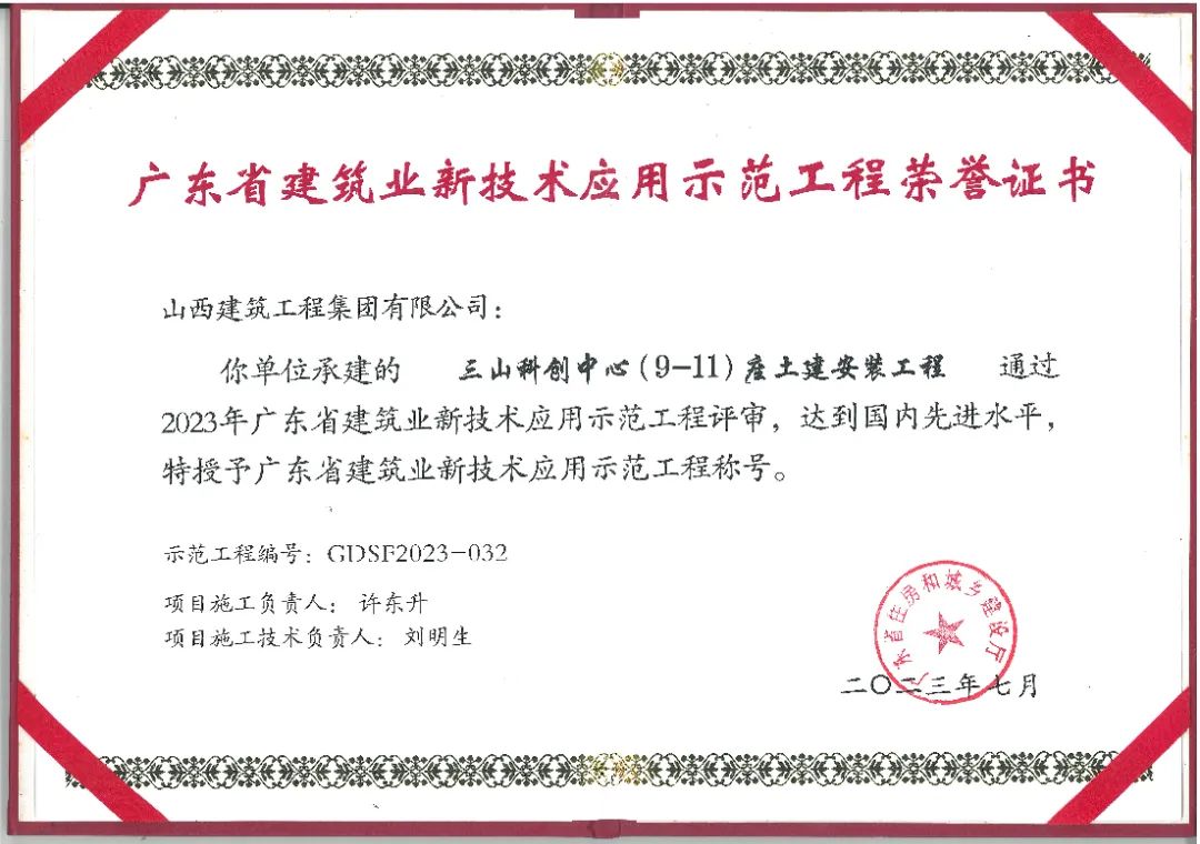 近日,由建工集团华南公司承建的三山科创中心����� �������Ƴ������������ �������Ƴ����������� �������Ƴ������������ �������Ƴ�������(9-11)座土建安装工程荣获2023����� �������Ƴ������������ �������Ƴ������������ �������Ƴ����������� �������Ƴ�������年度“广东省建筑业新技术应用示范工程����� �������Ƴ������������ �������Ƴ������������ �������Ƴ����������� �������Ƴ������”。这是建工集团在广东省首次斩获省级奖����� �������Ƴ������������ �������Ƴ������������ �������Ƴ����������� �������Ƴ�������项,为今后继续开拓广东市场����� �������Ƴ������������ �������Ƴ������������ �������Ƴ������������ �������Ƴ������打下坚实基础。