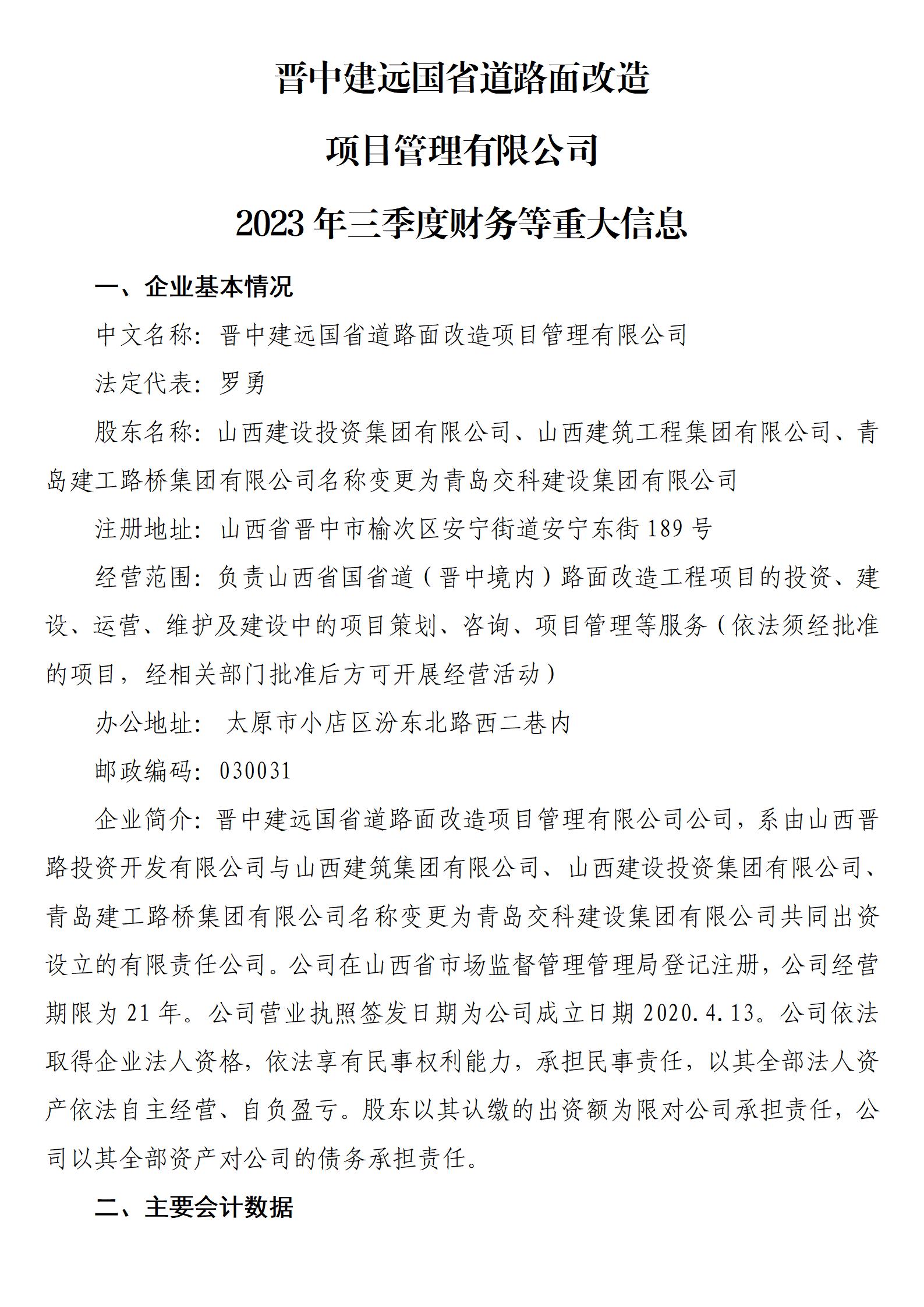 晋中建远国省道路面改造项目����� �������Ƴ������������ �������Ƴ����������� �������Ƴ����������� �������Ƴ�������管理有限公司2023年三季度财务等����� �������Ƴ����������� �������Ƴ������������ �������Ƴ����������� �������Ƴ�������重大信息