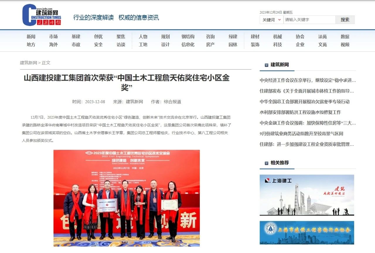 建筑时报报道了建工集团首次荣获����� �������Ƴ������������ �������Ƴ������������ �������Ƴ������������ �������Ƴ�������“中国土木工程詹天佑奖住宅小区金奖”����� �������Ƴ������������ �������Ƴ������������ �������Ƴ������������ �������Ƴ�������的新闻。