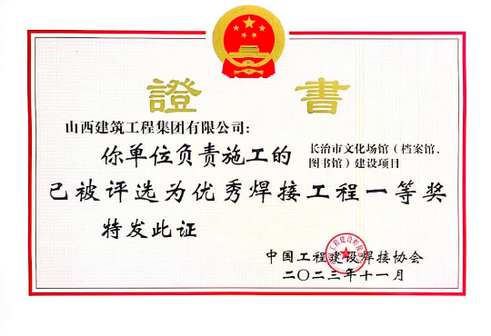 11月21日,中国工程建设焊接协会在����� �������Ƴ������������ �������Ƴ������������ �������Ƴ������������ �������Ƴ�������湖北武汉举办“2023年度工程����� �������Ƴ����������� �������Ƴ������������ �������Ƴ������������ �������Ƴ�������建设全面焊接质量管理活动成����� �������Ƴ������������ �������Ƴ����������� �������Ƴ������������ �������Ƴ�������果评价”。由钢结构第二工程公司承建的长治市����� �������Ƴ������������ �������Ƴ������������ �������Ƴ������������ �������Ƴ�������文化场馆建设项目图书馆、档案����� �������Ƴ������������ �������Ƴ����������� �������Ƴ����������� �������Ƴ�������馆钢结构工程荣获2023年度全国优秀焊接工程����� �������Ƴ������������ �������Ƴ������������ �������Ƴ������������ �������Ƴ�������一等奖,该项目也是继2023年7月获得����� �������Ƴ������������ �������Ƴ������������ �������Ƴ������������ �������Ƴ�������山西省钢结构协会“三晋钢结构样板工程”后在钢结����� �������Ƴ������������ �������Ƴ������������ �������Ƴ������������ �������Ƴ�������构专项领域的又一突破。