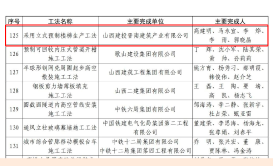 近日,山西省住房和城乡建����� �������Ƴ������������ �������Ƴ����������� �������Ƴ������������ �������Ƴ�������设厅下发《关于公布2023年度省级施工工法的通����� �������Ƴ������������ �������Ƴ������������ �������Ƴ����������� �������Ƴ�������知》,晋南园区申报的《采用立式����� �������Ƴ������������ �������Ƴ������������ �������Ƴ������������ �������Ƴ�������预制楼梯生产工法》成功获评省级施工工法。