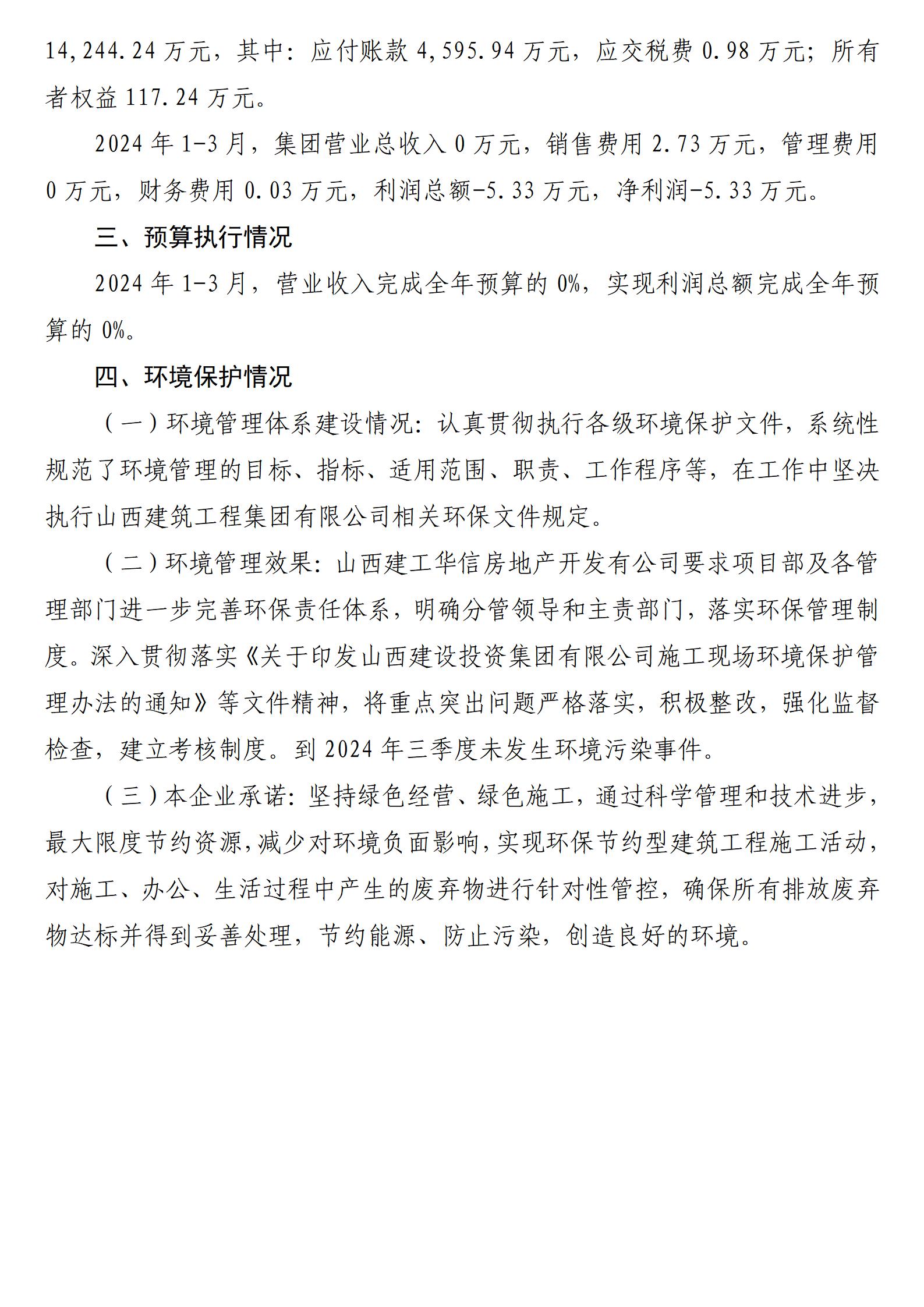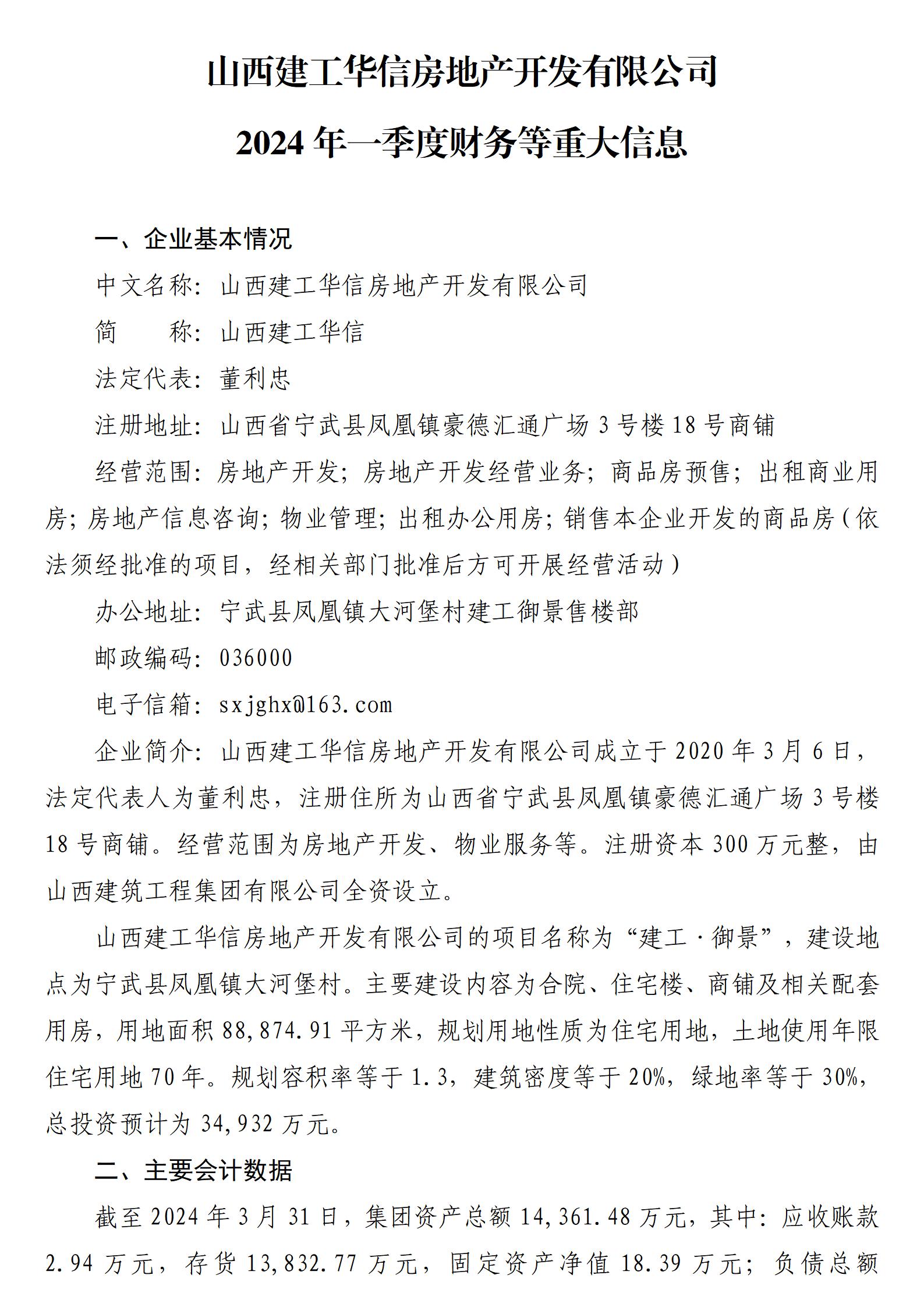 山西建工华信房地产开发有限公司2024����� �������Ƴ������������ �������Ƴ������������ �������Ƴ������������ �������Ƴ�������年一����� �������Ƴ����� �������Ƴ������������ �������Ƴ������������ �������Ƴ������������ �������Ƴ�������������季度财务等重大����� �������Ƴ������������ �������Ƴ������������ �������Ƴ����������� �������Ƴ�������信息