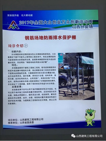 &nb����� �������Ƴ������������ �������Ƴ������������ �������Ƴ������������ �������Ƴ�������sp; 作为本次活动公司展区的����� �������Ƴ������������ �������Ƴ������������ �������Ƴ������������ �������Ƴ�������重点展示项目,由三分公司研发的“钢筋场地防雨排水����� �������Ƴ������������ �������Ƴ������������ �������Ƴ������������ �������Ƴ�������保护棚”(荣获国家实用新型专利奖、����� �������Ƴ������������ �������Ƴ������������ �������Ƴ����������� �������Ƴ�������山西省建筑业“五小”竞赛优秀成果二����� �������Ƴ������������ �������Ƴ������������ �������Ƴ����������� �������Ƴ�������等奖)、二分公司研发的“盖梁抱箍支架����� �������Ƴ������������ �������Ƴ������������ �������Ƴ������������ �������Ƴ�������法”(获山西省企业“五小”竞赛优胜三等奖)、钢结����� �������Ƴ������������ �������Ƴ������������ �������Ƴ������������ �������Ƴ�������构二分公司研发的“360°独立变幅����� �������Ƴ������������ �������Ƴ������������ �������Ƴ����������� �������Ƴ�������提升装置”、六分公司研发的����� �������Ƴ������������ �������Ƴ����������� �������Ƴ����������� �������Ƴ�������“高效柱模板定型加固器具”吸引了不少人����� �������Ƴ����������� �������Ƴ������������ �������Ƴ������������ �������Ƴ������的关注,充分展示了我公司在推进����� �������Ƴ����������� �������Ƴ������������ �������Ƴ������������ �������Ƴ�������科研成果转移转化方面的的显����� �������Ƴ����������� �������Ƴ������������ �������Ƴ������������ �������Ƴ������著成效,以及公司浓厚的双创氛围和职工的����� �������Ƴ������������ �������Ƴ������������ �������Ƴ������������ �������Ƴ������创意精神、创新能力。