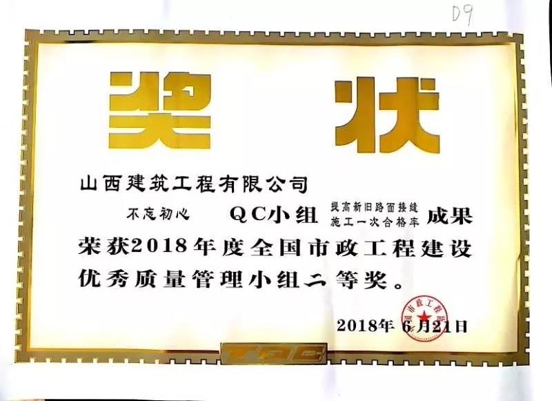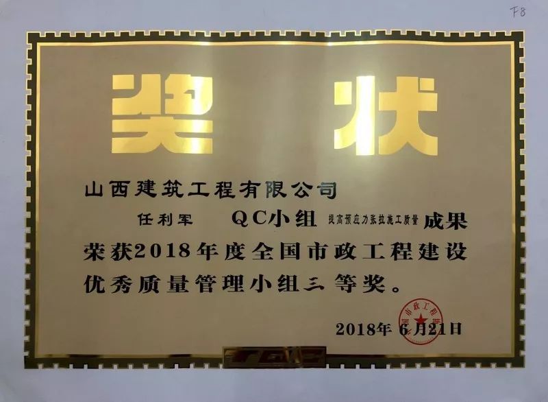 山西建筑工程有限公司三项QC成果喜获全国市政����� �������Ƴ����������� �������Ƴ������������ �������Ƴ����������� �������Ƴ�������工程优秀质量管理小组奖